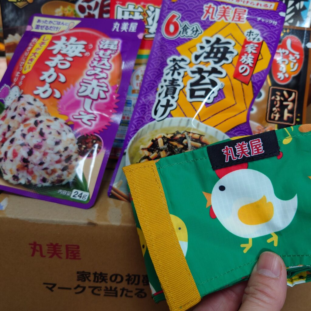 食べたこと無いものが色々入っていて、早速食べてみたら 海苔わさびふりかけ美味しかった☺